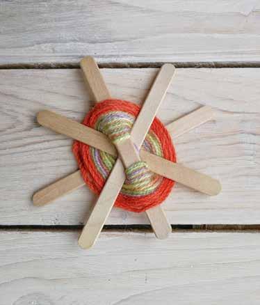 Change wool by tying the end and then starting a new piece of wool by tying it to one of the sticks.