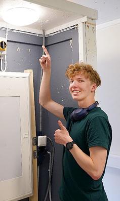 Elevene på VG1 Elektrofag på TVS, driver i disse dager med det helt siste innen elektriske anlegg – såkalte smarte styringer. Dette er elektriske anlegg som inneholder alt det vanlige, slik som lys, varmekabler, stikkontakter osv. Forskjellen er at disse tingene nå kan programmeres for å gjøre boliger mer strømbesparende og derfor mer miljøvennlige. Ved å bruke ulike sensorer kan f.eks. belysning i rom dimmes ned når det ikke registreres bevegelse, oppvarming kan skrus ned når ingen er hjemme, detaljert info om strømforbruk i en enkelt stikkkontakt kan avleses, og hele anlegget kan fjernstyres over internett. Alt administreres i en app på telefonen. Elevene øver seg i å montere og programmere slike anlegg, noe som gir dem erfaring med teknologi de møter senere i arbeidslivet.