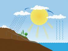• Vannet går i rundgang. Det fordamper, blir til skyer og faller ned som regn – igjen og igjen.