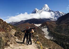 Nepalese highlands. They developed trade between the two countries bringing gems, wool and salt from Tibet in exchange for the plentiful Nepalese products. The Sherpa brought their Buddhist religion with them, which they evolved to develop their own sect of the faith. They are very generous and spiritual people with a colourful lifestyle, and our trek allows us to spend time with them in their homeland and visit in their monasteries.