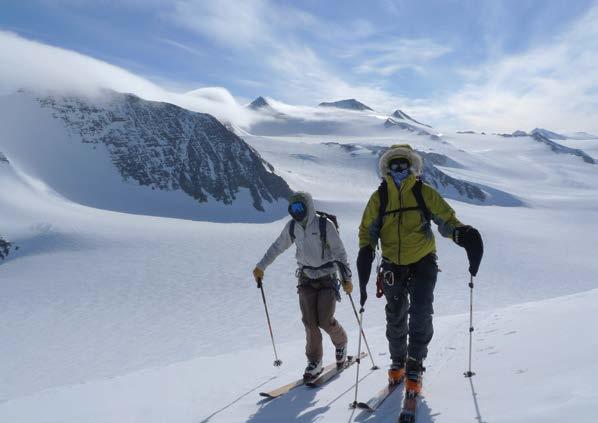 personal skillset and pursuits. There are options to take on local day trips and return home to Union Glacier Camp each evening for dinner or set out on a multiday expedition to explore various peaks in the Heritage Range. Once your skiing dreams are fulfilled, you’ll return to Union Glacier Camp to enjoy a celebration dinner and toast your achievements!