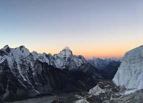 fixed rope that our guide and Sherpa team will fix ahead of the ascent. The High Camp is dramatic with exceptional views towards Cholatse, Taweche and Ama Dablam, especially at sunset when the peaks turn pink as the sun sets into Tibet. We climb to the far eastern summit on the summit ridge, a subsidiary of the high peak.
