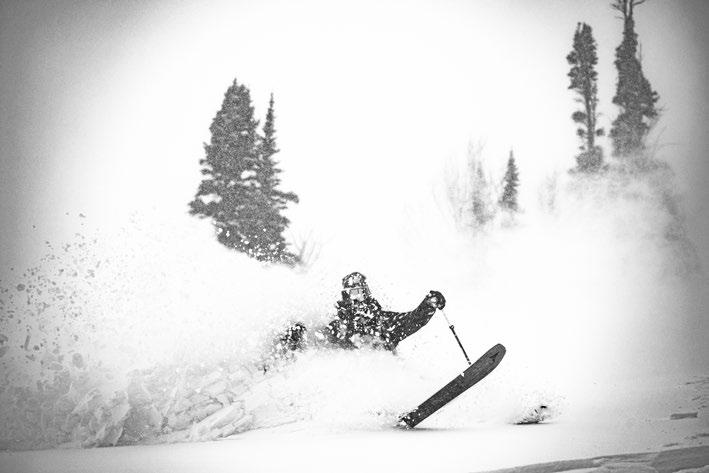 Left page top: Jeff Ledger with a bit of frozen mo action going on. Left page bottom: High mountains, dry snow, cold smoke. This page top: As photographers we like to get our fair share in between shots. Here’s local legend photog Chris Figenshau scoring his fix. Middle left to right: Dave Miller, one of the vast array of legendary guides, Being guided in small groups is almost as good as heli skiing, and a lot more affordable, Shroder neck deep whilst every where else was being tracked out. Next page top: How many nooks and crannies can you count on this mountain? You’d be lucky to find a quarter of them without a guide. Next page sequence: Jeff Ledger dolphining in the goodness away from the masses. Last page: Max Bardas frolicking in-bounds. It pays to be shown where to go.