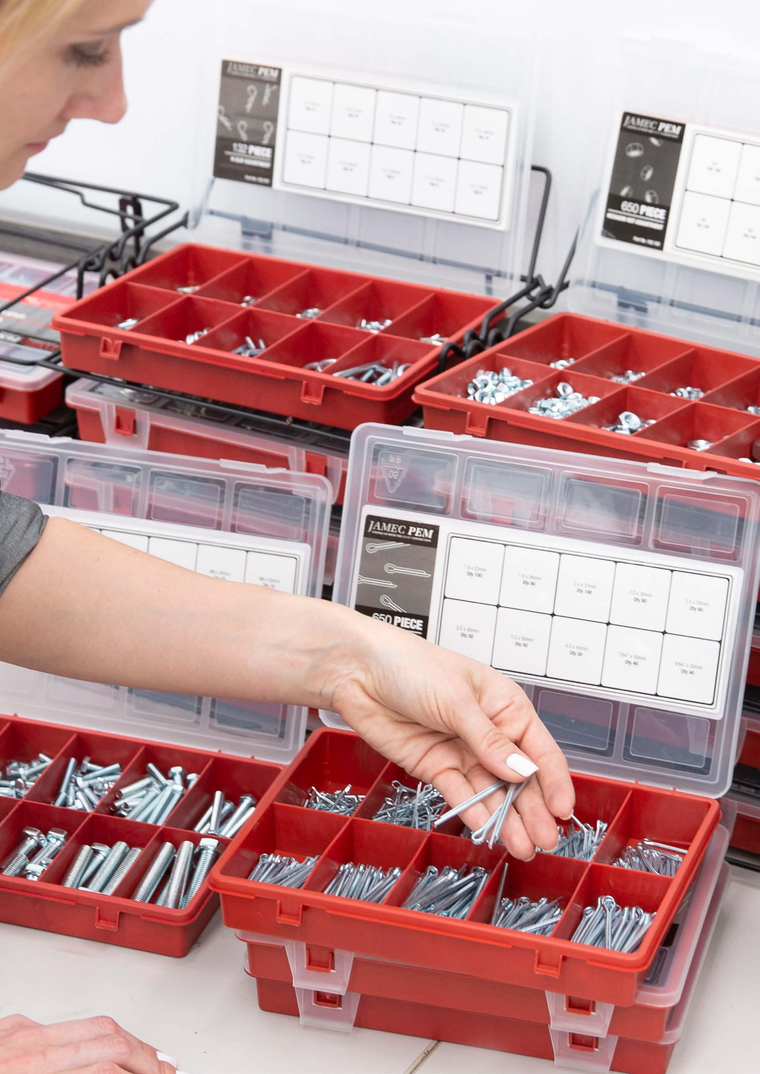 With a wide range of the most popular fasteners designed for automotive, hardware, marine and industrial markets, housed in a compact carry case.