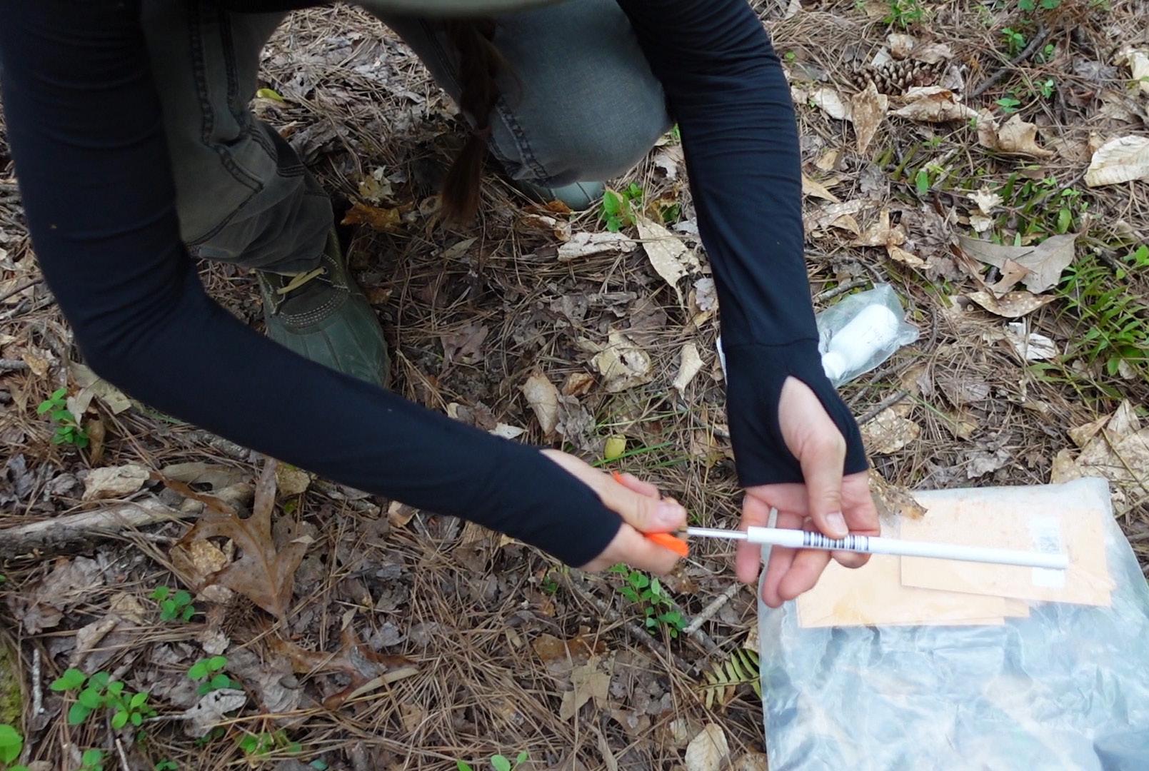 If part of the core gets stuck inside the borer, If the core is in multiple pieces, keep them in order. Place the core inside the paper straw, fold the ends of the straw to keep the core in place.