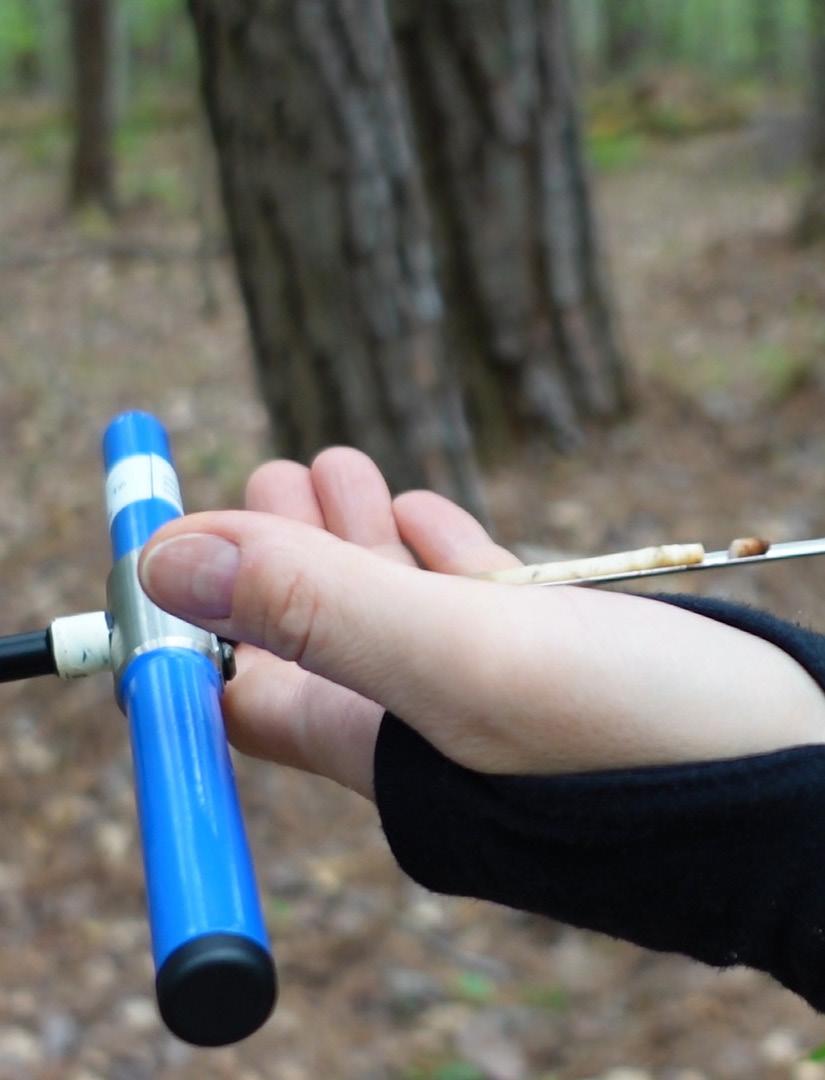 Carefully hand the extractor and its contents to your field partner or set on the ground. Remove the borer by turning the handle counterclockwise until it is free.