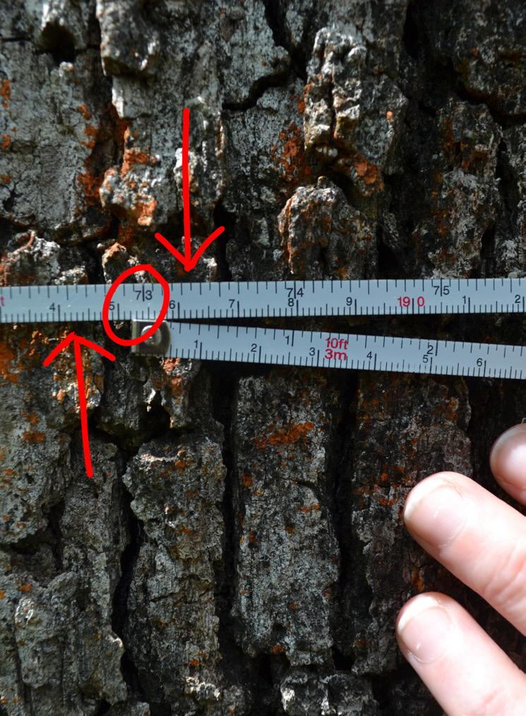 If the tree is on a slope, measure from the uphill side at a height of 1.3 meters (4.5 feet).
