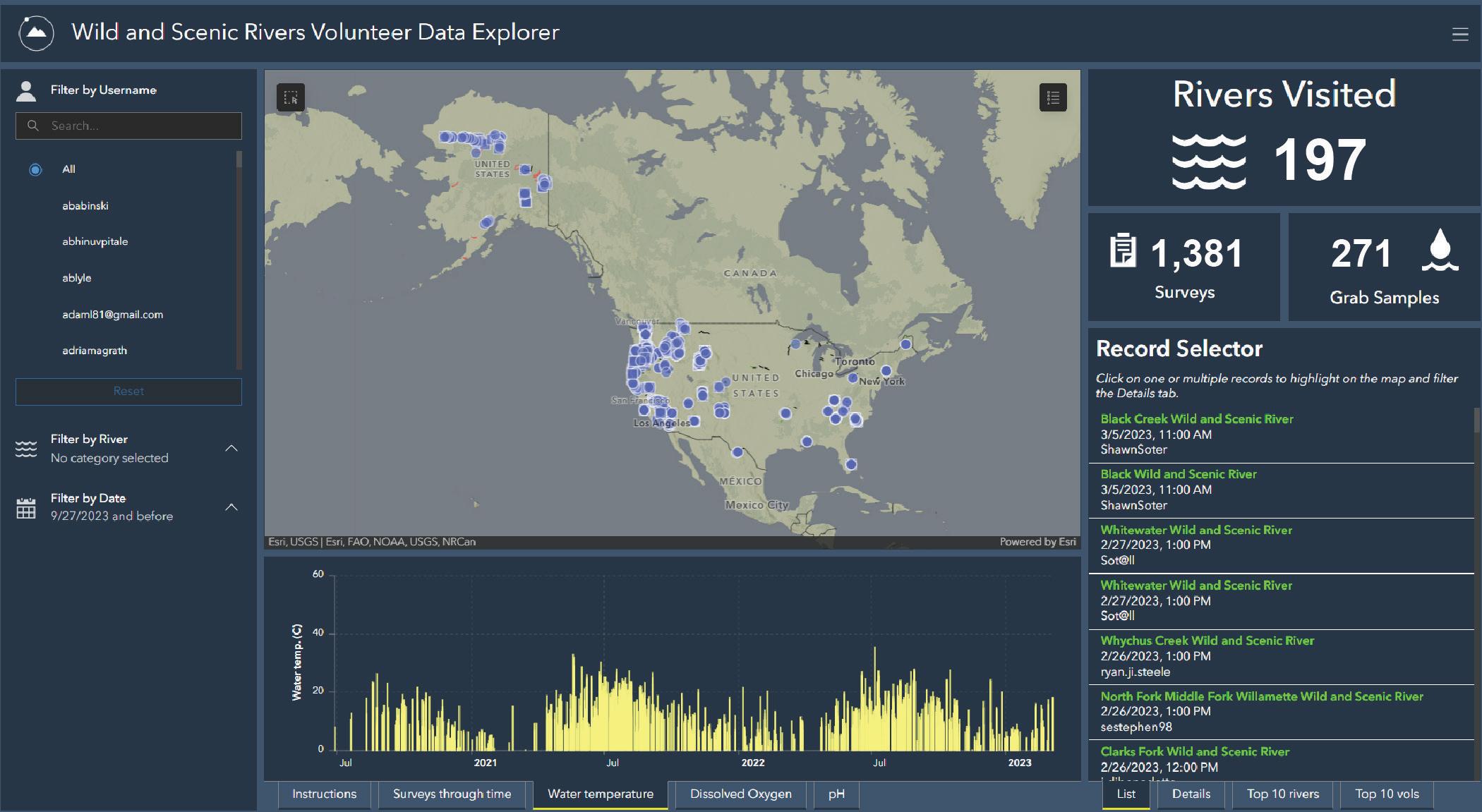This data exploration dashboard was developed to allow volunteers to explore the entire WSR dataset and see how their data collection efforts contributed to the project.