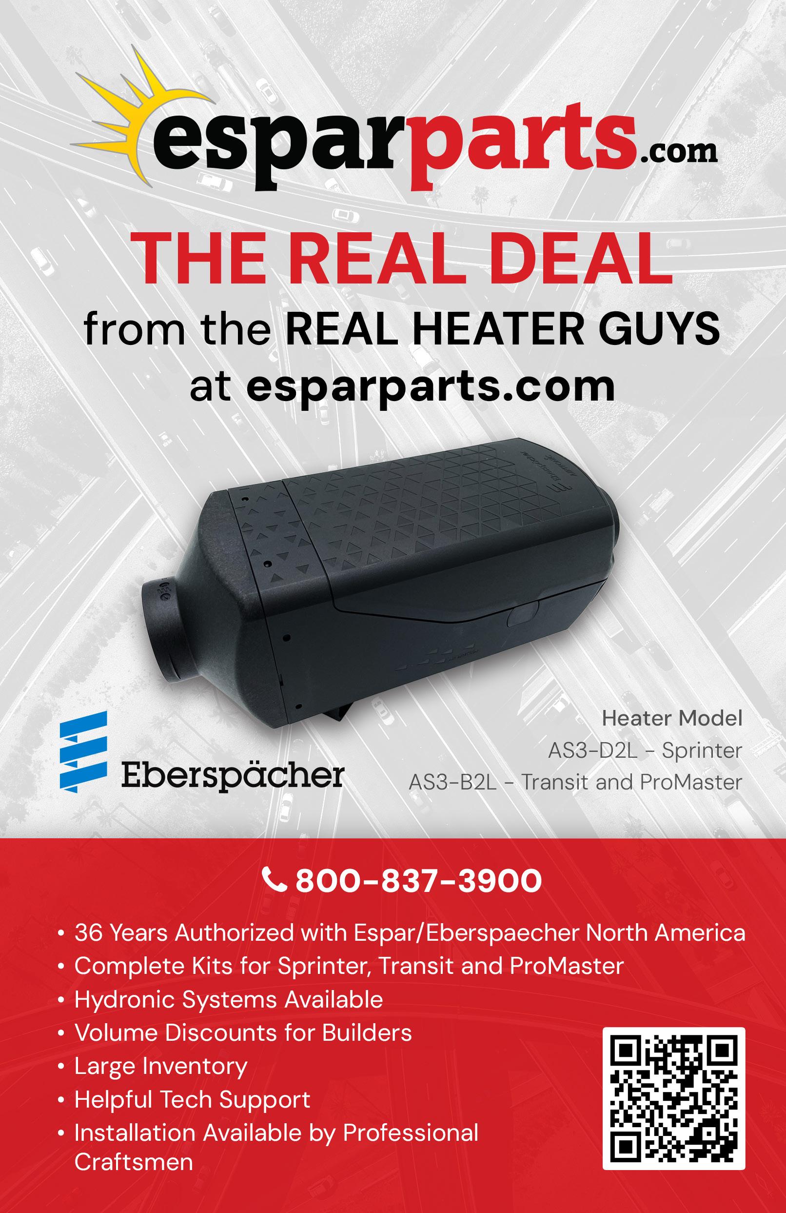 Espar Heater: A common, go to auxiliary diesel heater that connects to the diesel fuel supply.