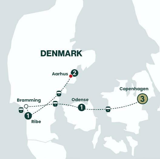 Includes 7-nights accommodation, trains between Copenhagen-Odense-Ribe-Aarhus, transfers, 8 meals, guided sightseeing and a selection of handpicked experiences.