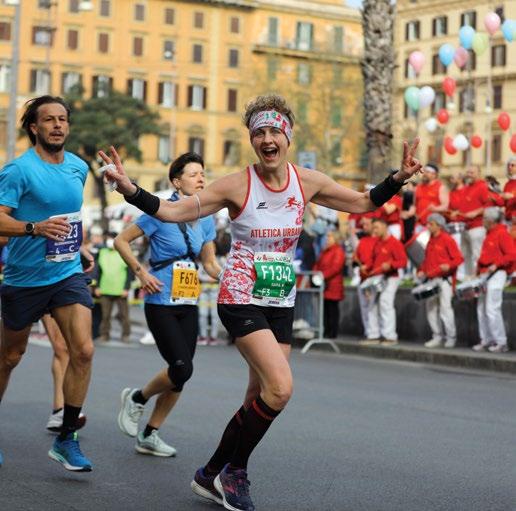 esperienza e per l’immenso amore che lega questi uomini alla maratona della città eterna, sono questi i “Senatori”, 19 uomini che vivono la maratona di Roma come un richia mo quasi viscerale. La loro passione è nata con la stessa manifestazione, ci sono da sempre, da ben 27 edizioni, non si sono tirati indietro nemmeno quando la maratona si è svolta a po chi mesi di distanza come è accadu to dopo l’Alba Edition Special Race di settembre 2021 a cui è seguito l’evento nella tradizionale data di marzo 2022.