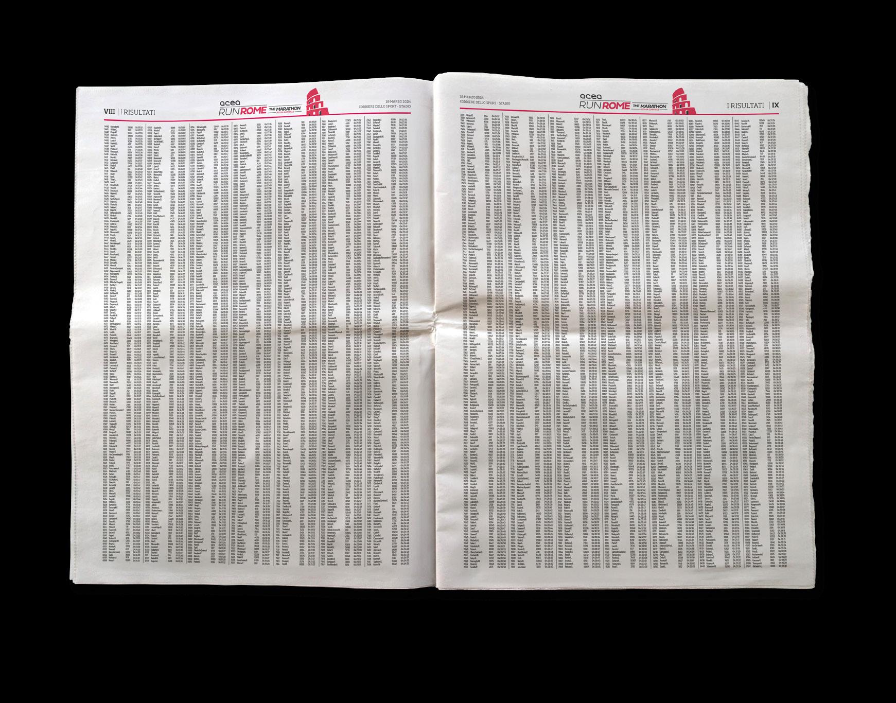 Every marathon runner at the finish line, name and time printed forever. Run to newsstands across Rome and Lazio on monday morning!