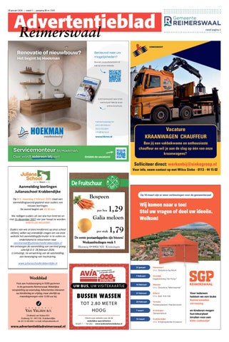 Huis-aan-huisbezorging in 9200 gezinnen in de gemeente Reimerswaal Wekelijkse verspreiding op woensdag. Advertenties inleveren op donderdag en vrijdag, maar uiterlijk op maandagmorgen vóór 12.00 uur bij