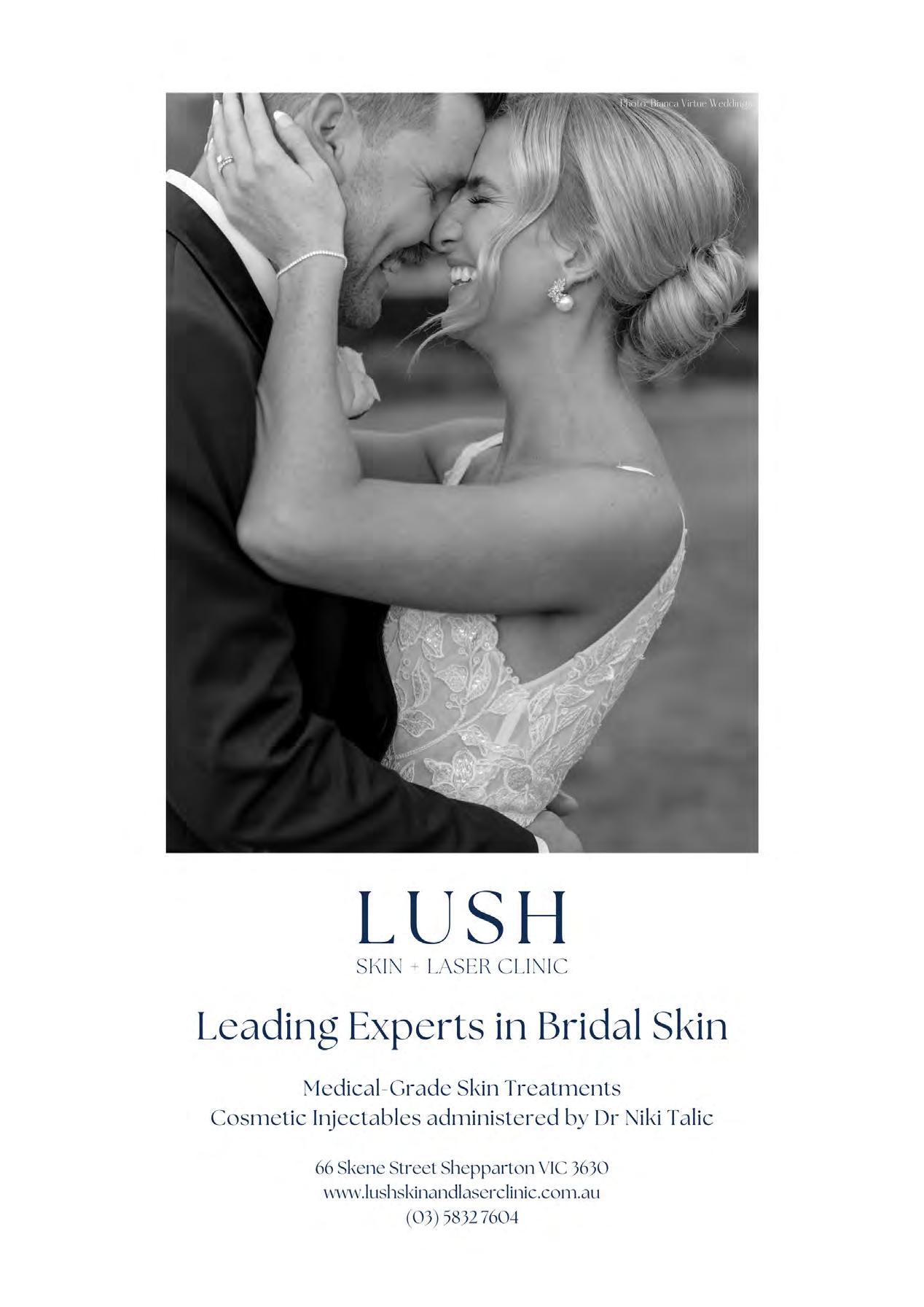 Yourwedding day is undoubtedly one of the most significant moments in your life, and looking and feeling your best is non-negotiable. Cat Armstrong, director of the multi-award-winning clinic, Lush Skin + Laser Clinic in Shepparton, discusses just a few of the treatment options that you might consider, to achieve radiant, flawless skin for your special day.