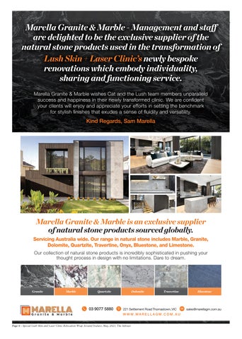 Marella Granite & Marble - Management and staff are delighted to be the exclusive supplier of the natural stone products used in the transformation of Lush Skin + Laser Clinic’s newly bespoke renovations which embody individuality, sharing and functioning service.