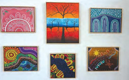 REFLECTING STORIES... of Yenbenal Woka, or where People and Country become one, the new, autumn exhibition at Kaiela Arts opened yesterday, Tuesday, March 21. Pictured are a selection of works created by Kaiela artists who have used Posca pens on an acrylic background to tell unique, ancestral stories. In the centre of the top row is artist Tammy-Lee Atkinson’s piece entitled, Woka, which represents the growth of trees and what is to come over the years.