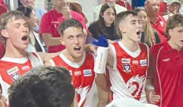 FINALS FEVER... Under-18s Swans sing the song after they defeated Shepparton Bears and progressed to the Grand Final. Photo: Sherree Thomas