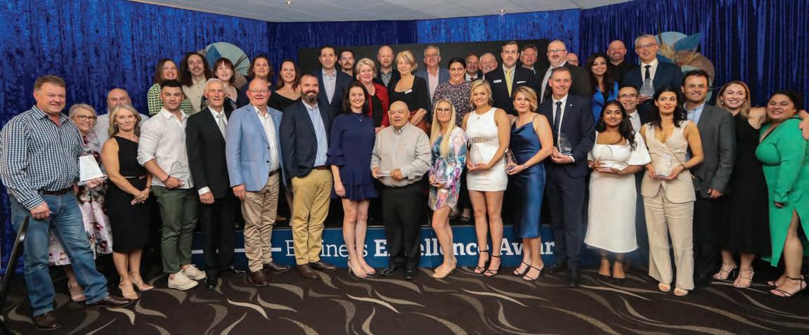 IN THEIR FIELDS… Pictured on stage at the 25th annual Business Excellence Award’s gala dinner are the 2022 winners and sponsors of the awards. Tickets to the 2023 Gala are now available via Riverlinks. Photo: The Adviser