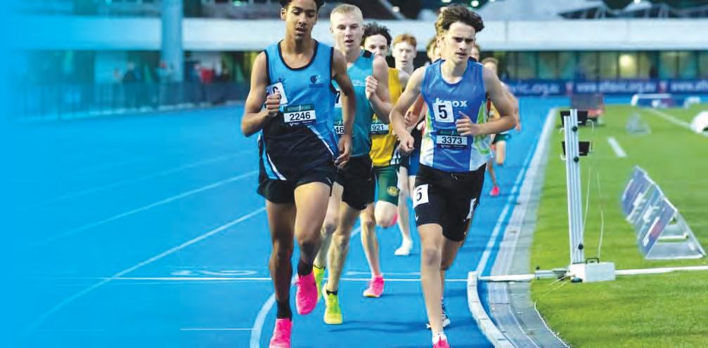 BRINGING IT HOME… Kazadi Kadima (left) rounds the bend as he pushes to the finish, securing a silver medal in the U16 1500m.