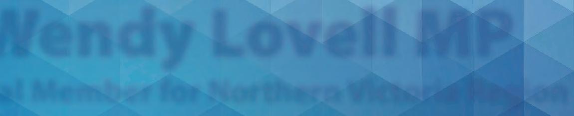Authorised by Wendy Lovell MP, 222 Wyndham Street Shepparton. Wendy Lovell MP Liberal Member for Northern Victoria Region p: (03) 5821 6668 e: wendy.lovell@parliament.vic.gov.au www.wendylovell.com.au My team and I are here to help you with any State Government issues. Please call or email us if you require any assistance.
