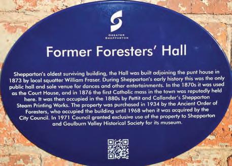 To find out more about the Greater Shepparton Heritage Plaques Pilot Program, visit greatershepparton. com.au/bpi/planning/strategicplanning/cultural-heritage/ heritage-plaques-pilot-program