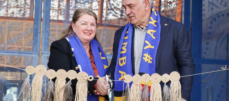 FIRST... Minister for Treaty and First Peoples Natalie Hutchins and Paul Briggs OAM, executive chairman of Kaiela Institute, pictured cutting the ribbon at the Munarra Centre, an Australian-first initiative that will boost the region’s productivity and educational opportunities for Indigenous and non-Indigenous learners of all ages in the pursuit of education.