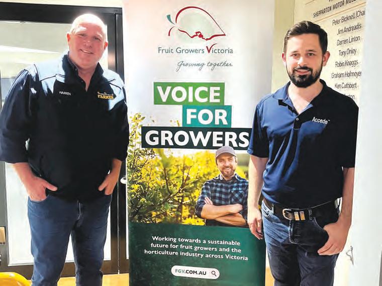 Fruit Growers Victoria’s Cars, Coffee and Chat event at MOVE, on Thursday, September 26, was a success. Jack Bartels (right) of Sumitomo Chemical talked about the methodology for chemical thinning to improve the efficacy and efficiency of crop space and crop output.