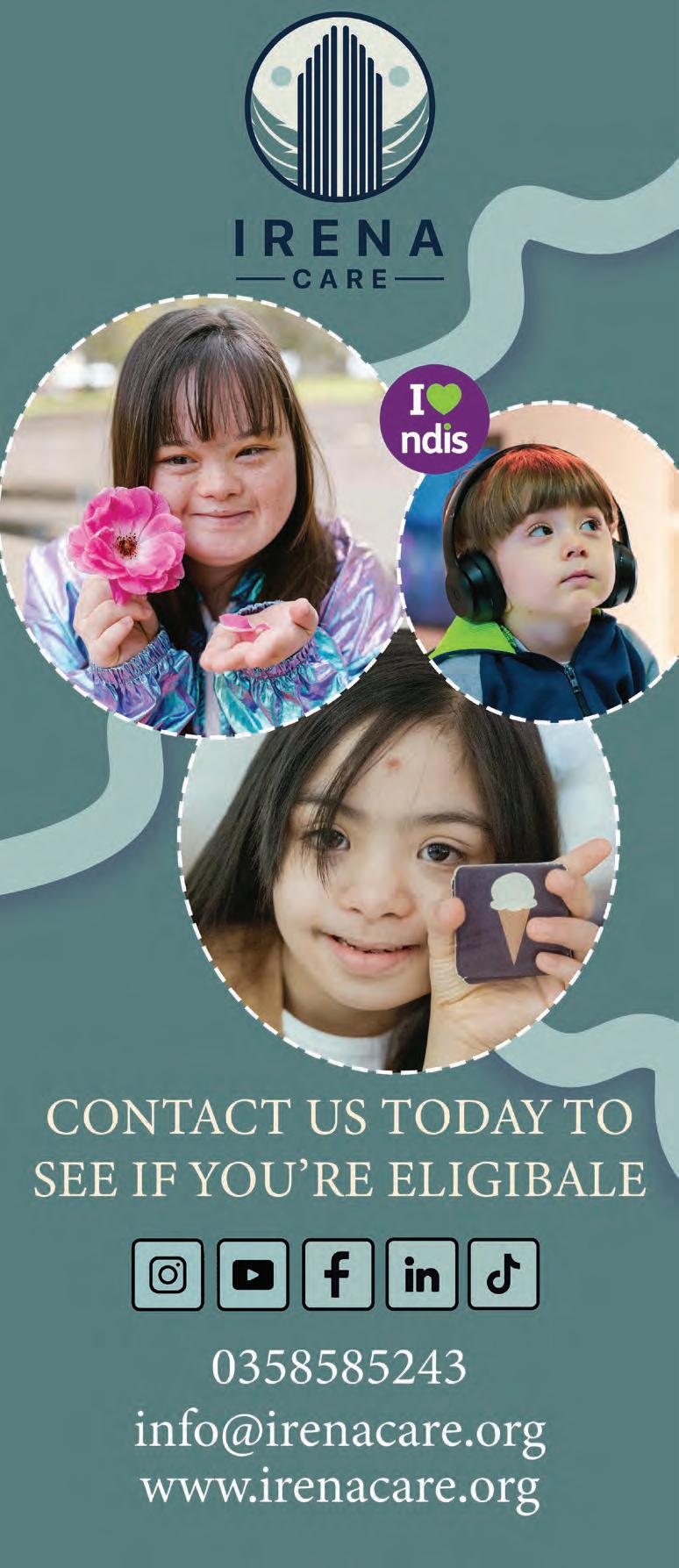 “Workingasadisabilitysupportworker hasgivenmylifeadeepersenseof purpose.Helpingothersliveeachday tothefullestbringsmegenuine happinessandfulfillment.This experiencehastransformedmeand changedmyperspectiveontheworld forthebetter.IrenaCareandtheteam haveplayedacrucialroleinshaping meintothepersonIamtoday.”