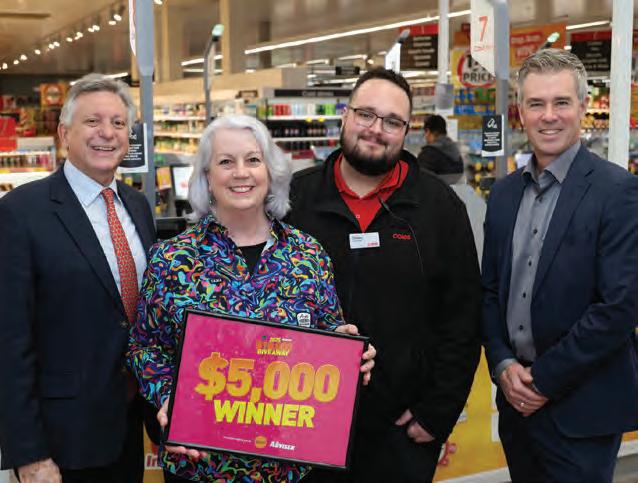 GRAND PRIZE... Lee Lythgo has won the top prize of $5,000. Lee is pictured with The Shepparton Adviser Managing Director Geoff Adams, Coles Riverside Plaza store manager Ethan and GMCU CEO Richard O’Nians. Photo: Emma Harrop