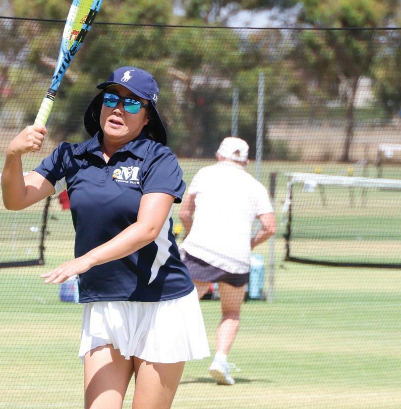 Photos + Reporting Page 9 BIG WINNERS... The VICSANS are a mixture of friends from Victoria and South Australia who would do anything to spend time on the tennis court together, including travelling to Greater Shepparton to compete at Country Week. Above in group photo from left, Anne Crouch (Barossa), Bev Virgin (Adelaide), Jennifer Luke (Maffra), Diane Arnot (Sale) and Meridy Dunn (Adelaide). Photo: Supplied. Inset Photo Left: Juyoun Song from Macedon Spinners was one of the many competitors at Tennis Victoria’s Country Week. Right: Ben “Orse” Hallas from the Western Port Suns had a fantastic time at Country Week tennis tournament at the Shepparton Lawn Tennis Club and Mooroopna Lawn Tennis Club. Photos: Emma Harrop