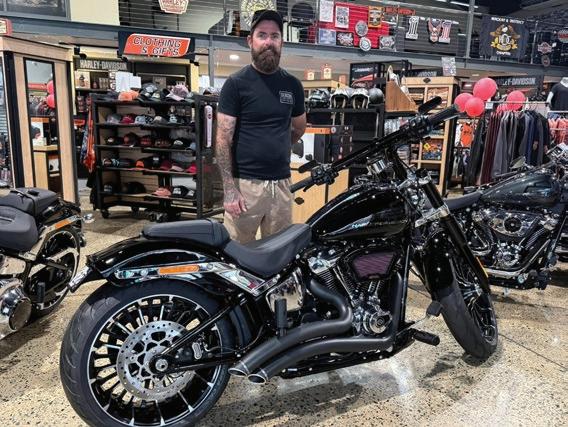 Council is inviting local businesses to submit special offers for visitors attending the 2026 H.O.G. State Rally, set to bring more than 1,000 visitors and over 600 Harley-Davidson motorcycles to the region. Pictured is Benjamin Eddy with his brand new 2025 Harley-Davidson Breakout. Photo: Supplied