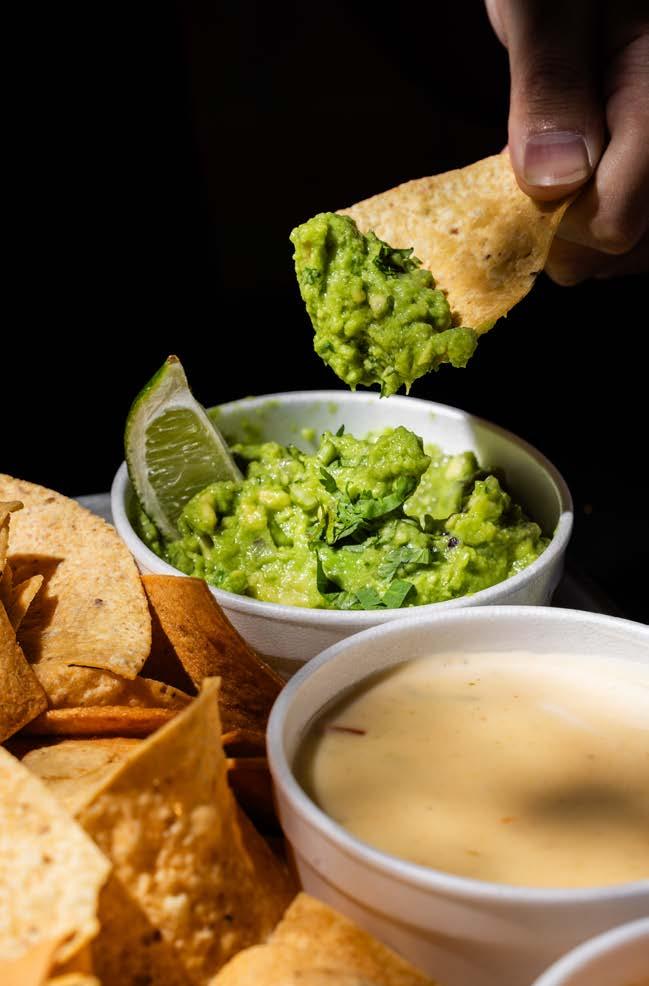 Appetizers of chips with guacamole, salsa and the queso blanco pair with well with any taco on the menu.