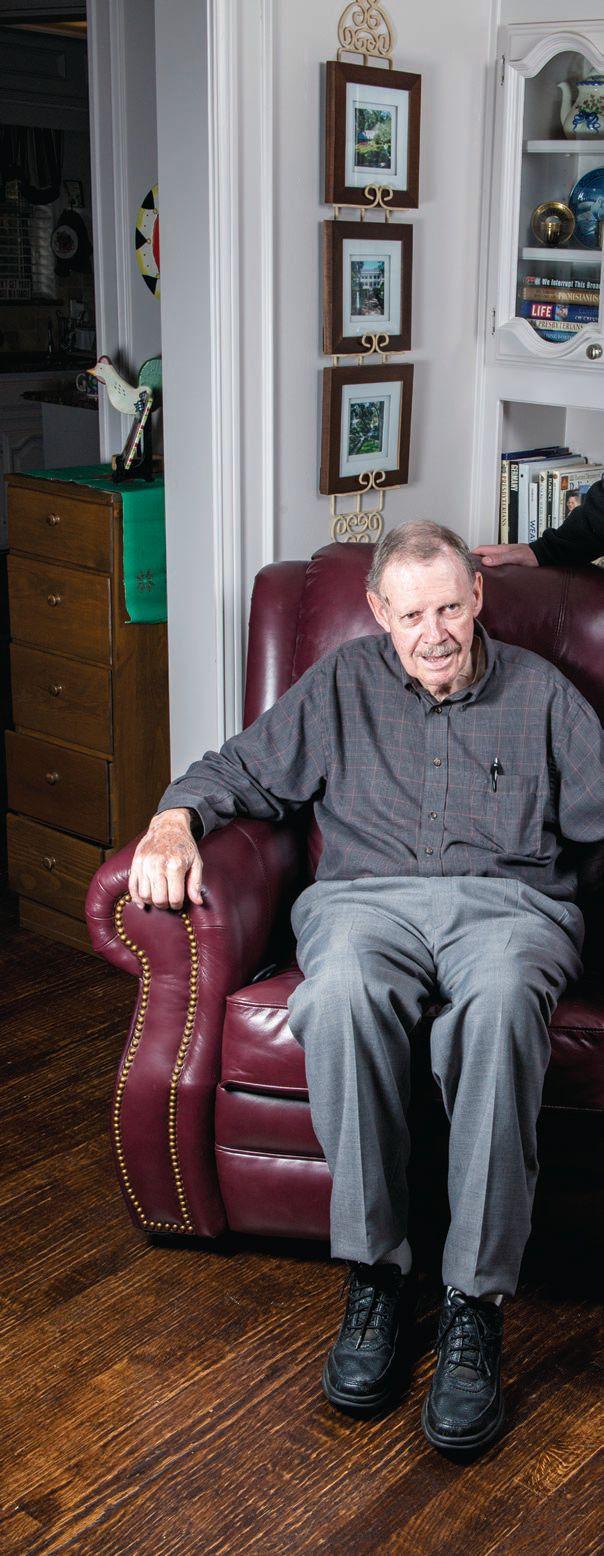 Their miniature schnauzer, Sophie, is at John’s feet as he walks, no cane nec- essary, and she rests her head on his leg when he sits.
