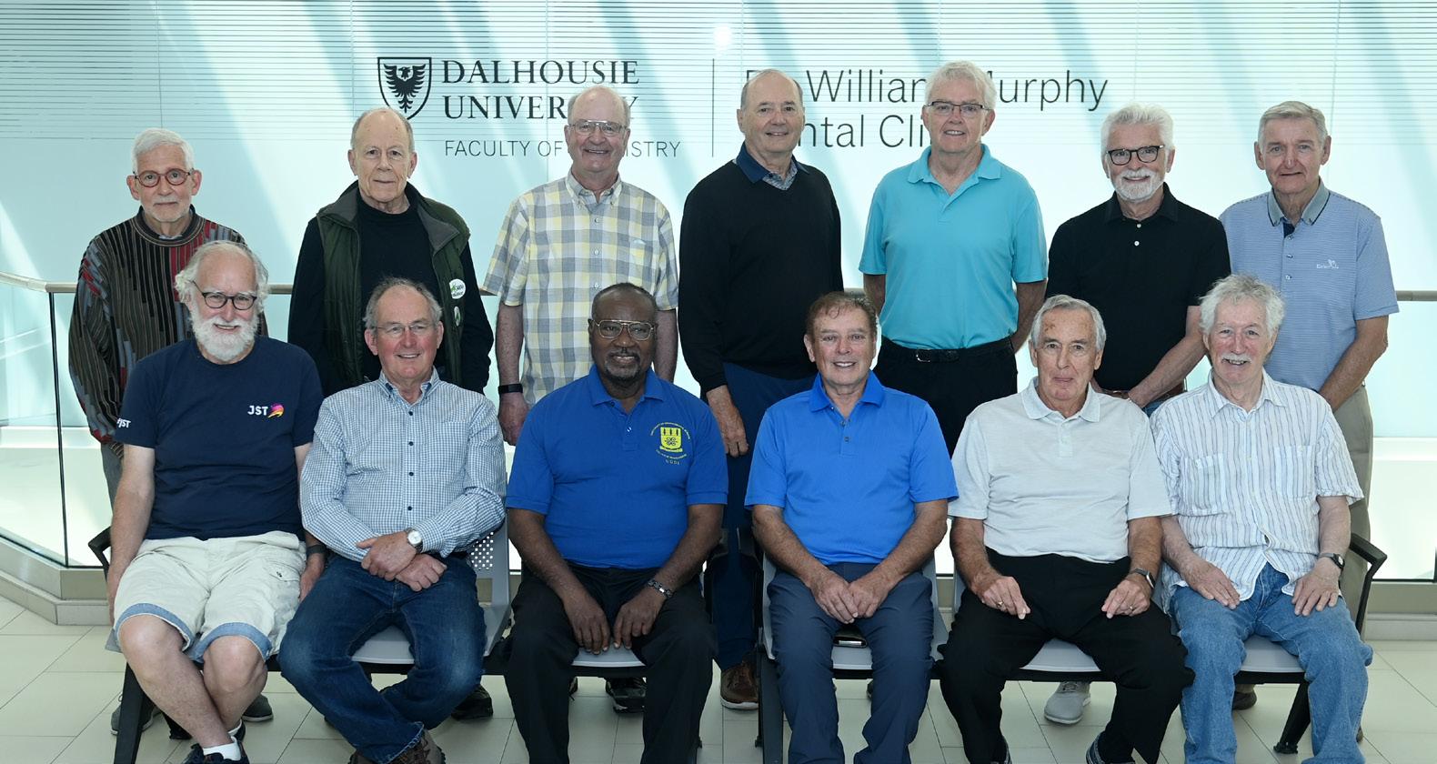 Members of the DDS’72 class toured the Dr. William Murphy Dental Clinic and joined the dean, Dr. Davis, for a 50th reunion luncheon in June. Front row - L to r: Eric Parsons, Bruce Hunt, Ishmael Bruce, Bruce Roberts, Richard Lohnes, Barrie Sandham. Back row - L to r: Robert MacLean, Rob Murray, Dan Green, Richard Sandelli, Keith MacMullin, David Moore, Barry MacLeod