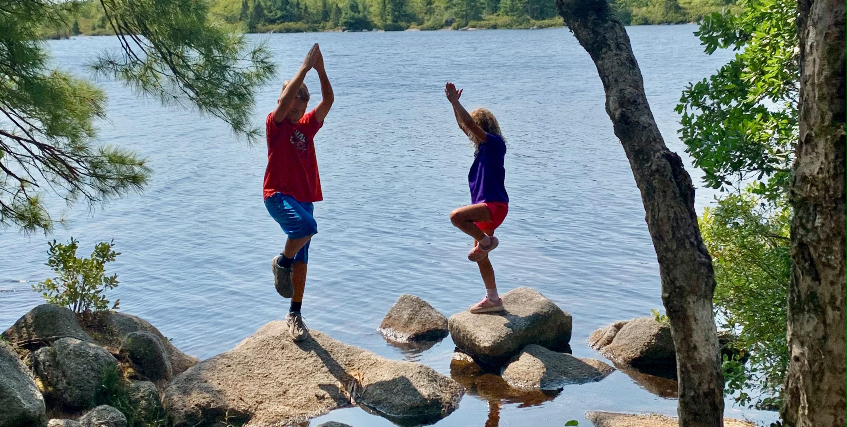 Just past Pot Lake, I saw Damian scale up a large rock where he unexpectedly stood in a yoga tree pose at the top. Zuri joined him and for a moment both children were standing strong and peacefully together on one leg with arms stretched overhead. “Exercise is an integral part of our lives,” said Rosa.