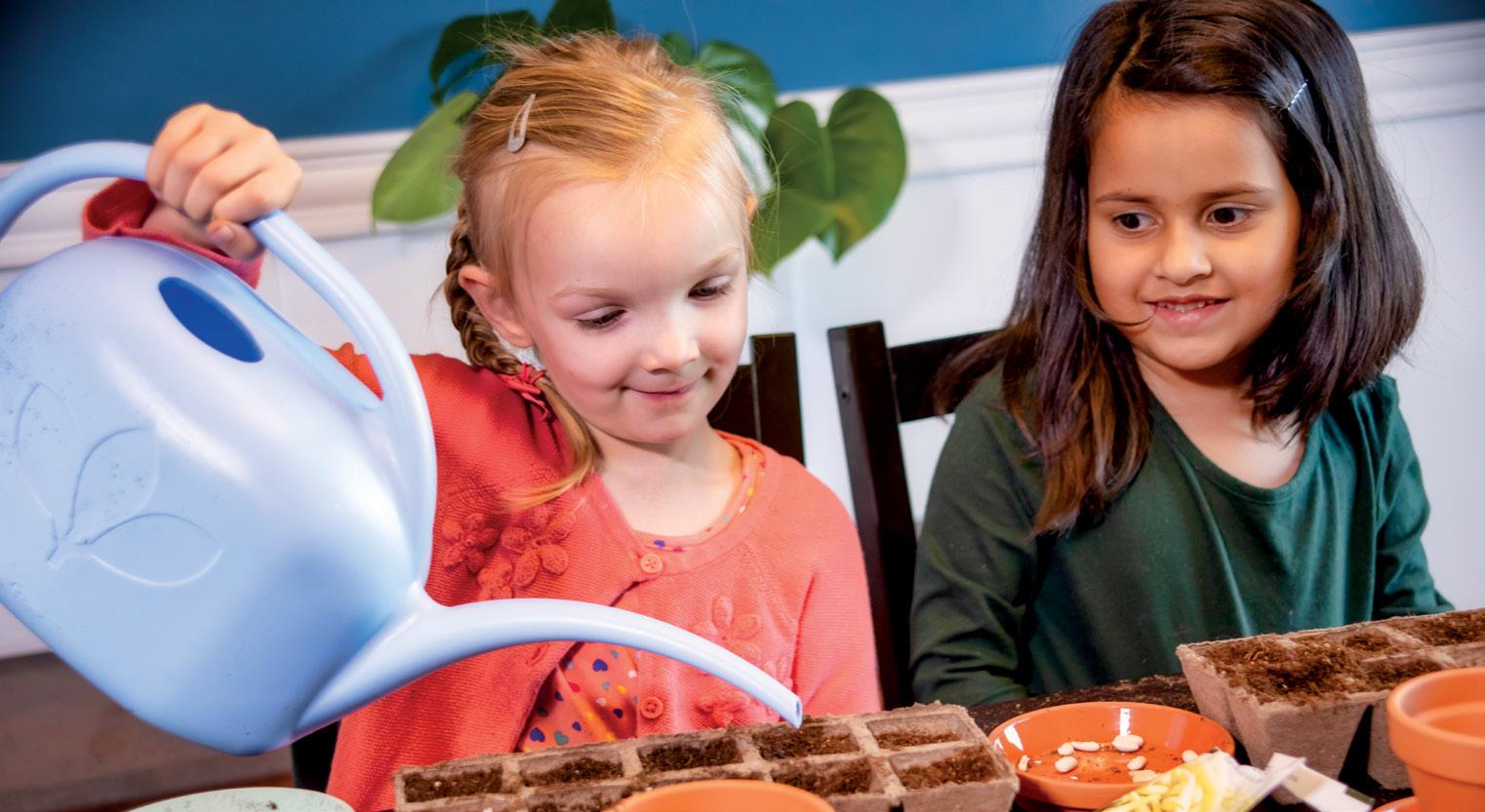 Sophie George, 5, and Sofia Hussain, almost 5, of Sackville, plant an indoor garden.