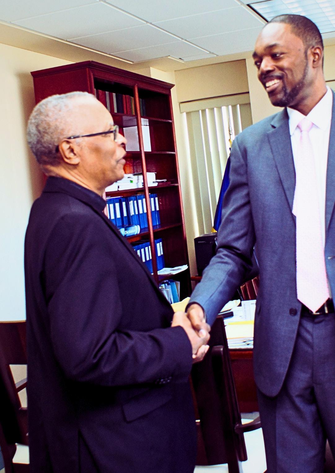 Monsignor Vincent Blackett meets with the Hon. Colin Jordan, Minister of Labour, Social Security and the Third Sector