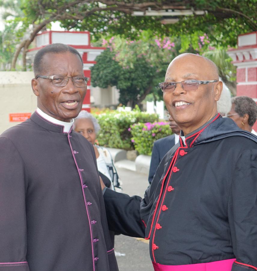Former Dean of St Michael’s Cathedral and All Angels, Harold Crichlow, deceased, in conversation with Monsignor Harcourt Blackett