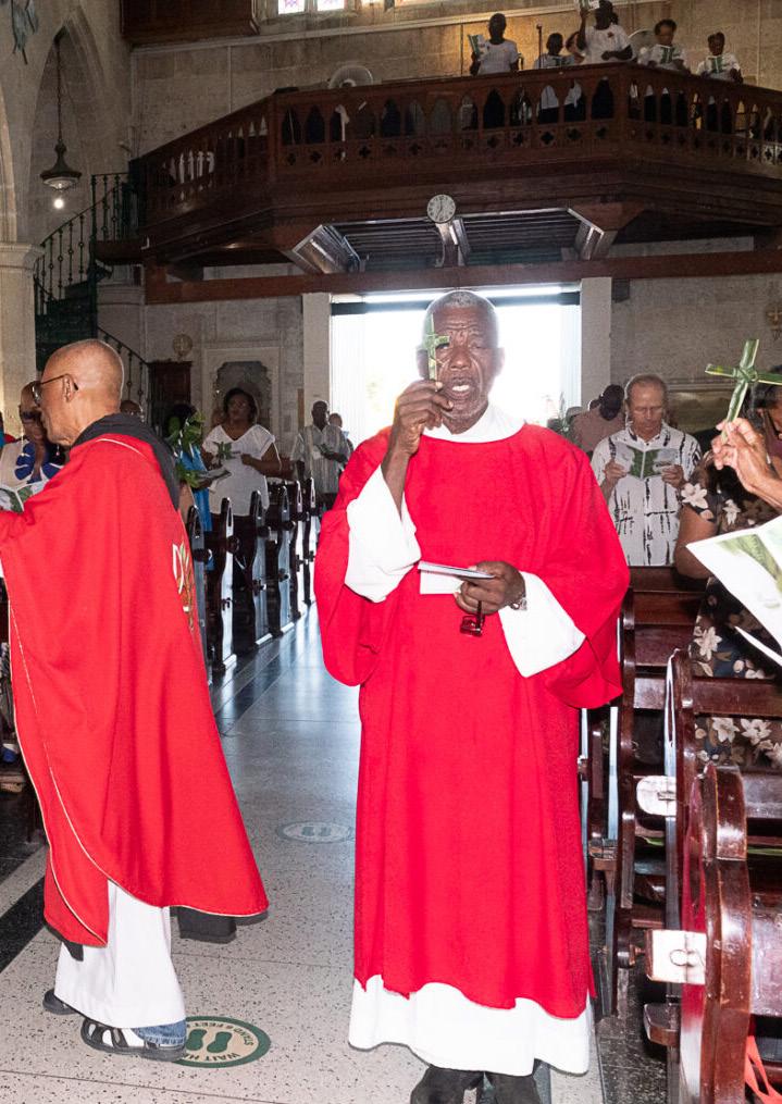 Monsignor Vincent Blackett & Deacon George Waithe. Monsignor was the main celebrant at the Palm Sunday Procession and Mass of the St.Patrick’s Roman Catholic Cathedral while on a recent visit to Barbados.