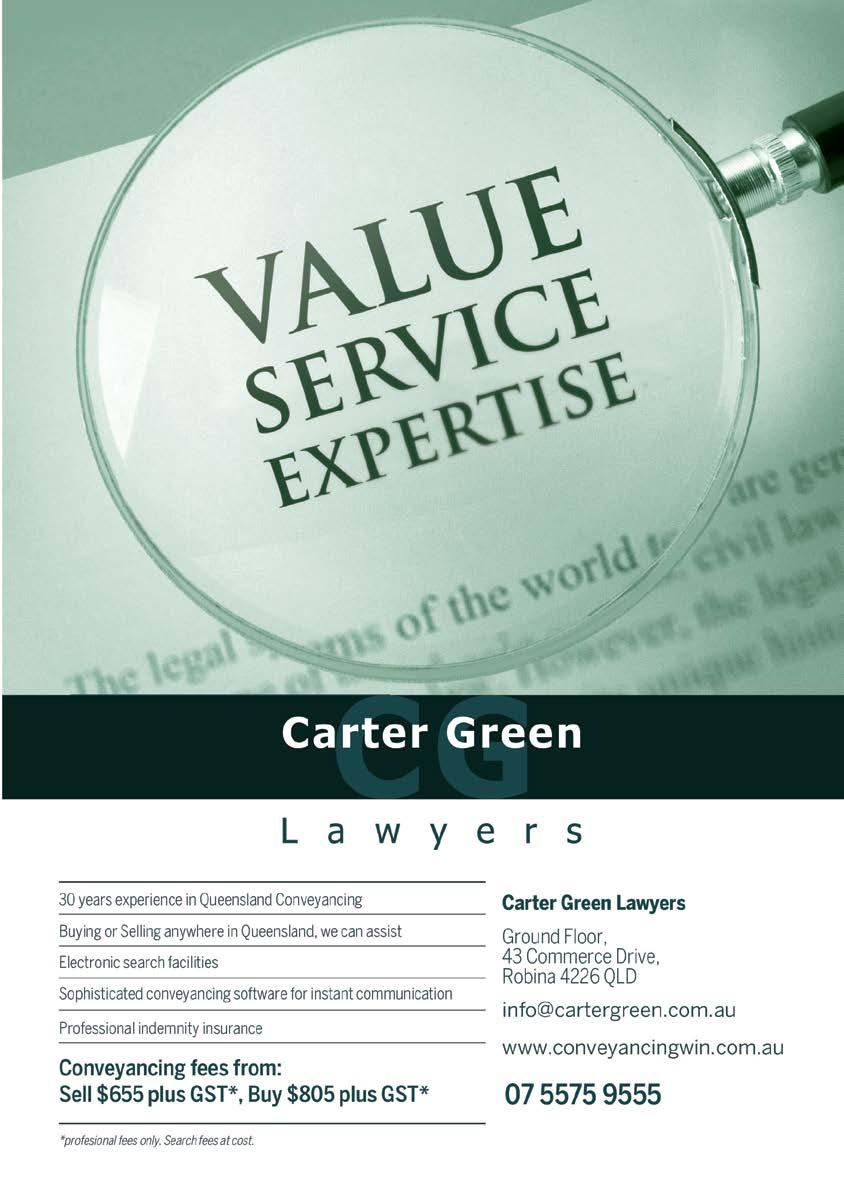 CONSTRUCTION ELECTRICAL PROPERTY INSPECTIONS 3 Kohl Street, Upper Coomera, QLD 4209, Australia (07) 55 000 657 coomerastoneworx@bigpond.com www.coomerastoneworx.com.au LOOKING FOR CLEAN, SAFE AND AFFORDABLE STORAGE ON THE GOLD COAST? We provide a full suite of storage solutions from short term locker hire right through to portable storage units, cars, boats, caravans, bikes and of course... containers! Our friendly team are experts in their field so give us a call and we’ll help find the best solution to suit your needs at an affordable price! • 10’ shipping containers • 20’ shipping containers • Completely weatherproof • Fully Insulated • 24/7 access • Gated complex totally secure CCTV • Concrete hardstand for ease of access • Also have the 10m3 portable modules with removal services eliminating the double handling. info@elitecontainerstorage.com.au 0450 193 194 Gold Coast 13 Enterprise Street, Molendinar www.elitecontainerstorage.com.au Storing with us here at Elite Container Storage is simplebook it in, lock it in and walk away. • Building + Property Inspections • Pre-purchase Inspections +Handover Reports • Rental Reports • Pest + Termite Inspections Available Garry Witt Licensed, Registered & Insured Builder ULTIMATE PROFESSIONALISM GUARANTEED ULTIMATE PROPERTY INSPECTIONS offers building and property inspections, pre purchase inspections, handover reports and rental reports to the entire Gold Coast. Pest and termite inspections are also available. At Ultimate Property Inspections, the inspections are done by the owner, GARRY WITT, a builder with over 25 years experience, ensuring that every report is thorough and professional. LOCALLY OWNED & OPERATED For Bookings + Quotes CALL US 0497 979 123 garry@ultimatepropertyinspections.com.au www.ultimatepropertyinspections.com.au SELLING IN QLD? Get Your QLD Smoke Alarm Upgrade and Compliance Certificate Today. Call Us (07) 5528 4449 or 1300 785 936 capitalelectric.com.au License No. Q77719 Gold Coast Brisbane Ipswich Same Day Bookings Available. BOOK NOW E Q