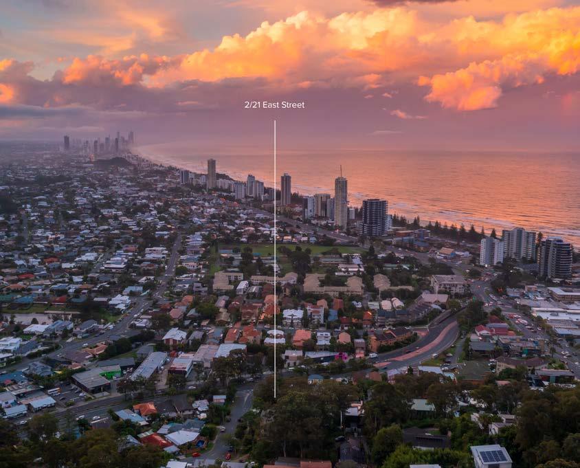 2/21 EAST STREET, BURLEIGH HEADS Emma Grant 0403 836 523 e.grant@raywhite.com 3 1 2 2 1 3 Near New Luxury 3 Bed, Moments From James St For Sale • Low BC of only $92* per week, includes building insurance, sinking fund, admin fund, lift & garden maintenance • Rental return of $1,100* per week • Potential Air BNB return of $3,500* per week • Three queen sized bedrooms, master with stunning ensuite featuring floor to ceiling tiles and walk-in robe • Perfect floor plan with high-end, hardwood timber flooring 9