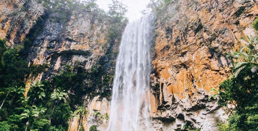 THE GOLD COAST IS FAMOUS FOR ITS 52 KILOMETRES OF BEACHES, BUT THAT’S JUST THE START OF WHAT’S ON OFFER. DRIVE A FEW KILOMETRES WEST (THAT’S LITERALLY ALL IT TAKES) AND YOU’LL BE IN THE MIDDLE OF SUB-TROPICAL, ANCIENT RAINFOREST, IDEAL FOR HIKING OR MOUNTAIN BIKING OR JUST SPENDING TIME AT A SUN-DRENCHED CAFÉ OR FARMERS MARKET.