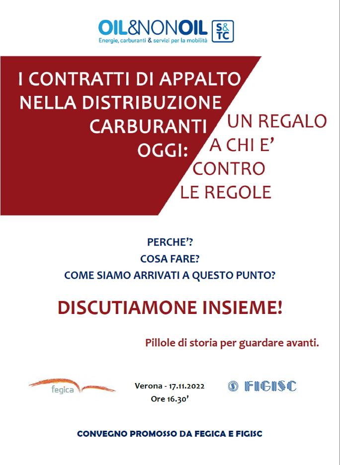 L’utilizzo del contratto di appalto per la rete distributiva dei carburanti rappresenta uno tra gli effetti più sintomatici ed esemplificativi dello stato di degrado del settore. È l’assunto dal quale parte la riflessione avviata da Fegica e Figisc attraverso un convegno promosso all’interno della rassegna Oil&nonOil e tenuto nel pomeriggio del 17 novembre, dal titolo “I contratti di appalto: un regalo a chi è contro le regole”. Secondo i presidenti Roberto Di Vincenzo e Bruno Bearzi “l’impiego dei contratti di appalto e di altri omologhi strumenti contrattuali è del tutto estraneo alla normativa vigente e rappresenta per i titolari di autorizzazione che lo adottano – compagnie e retisti – un modo per rendere più precario possibile il rapporto con i gestori dei propri punti vendita”. A cominciare dall’obbligo normativo a negoziare collettivamente per equilibrare una relazione naturalmente sbilanciata.