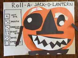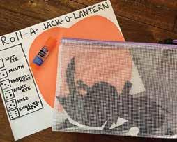 Glue the orange pumpkin shapes onto a white piece of paper. Next to the pumpkin, create a key showing what each side of the die will mean. For example, if a four is rolled, they need to choose a shape for their nose. If a six is rolled, they need to choose an embellishment such as some facial hair, jewelry, or a hat. Keep rolling the die until your kids are happy with their pumpkin’s face or turn it into a game to see who can finish their Jack-OLantern first.