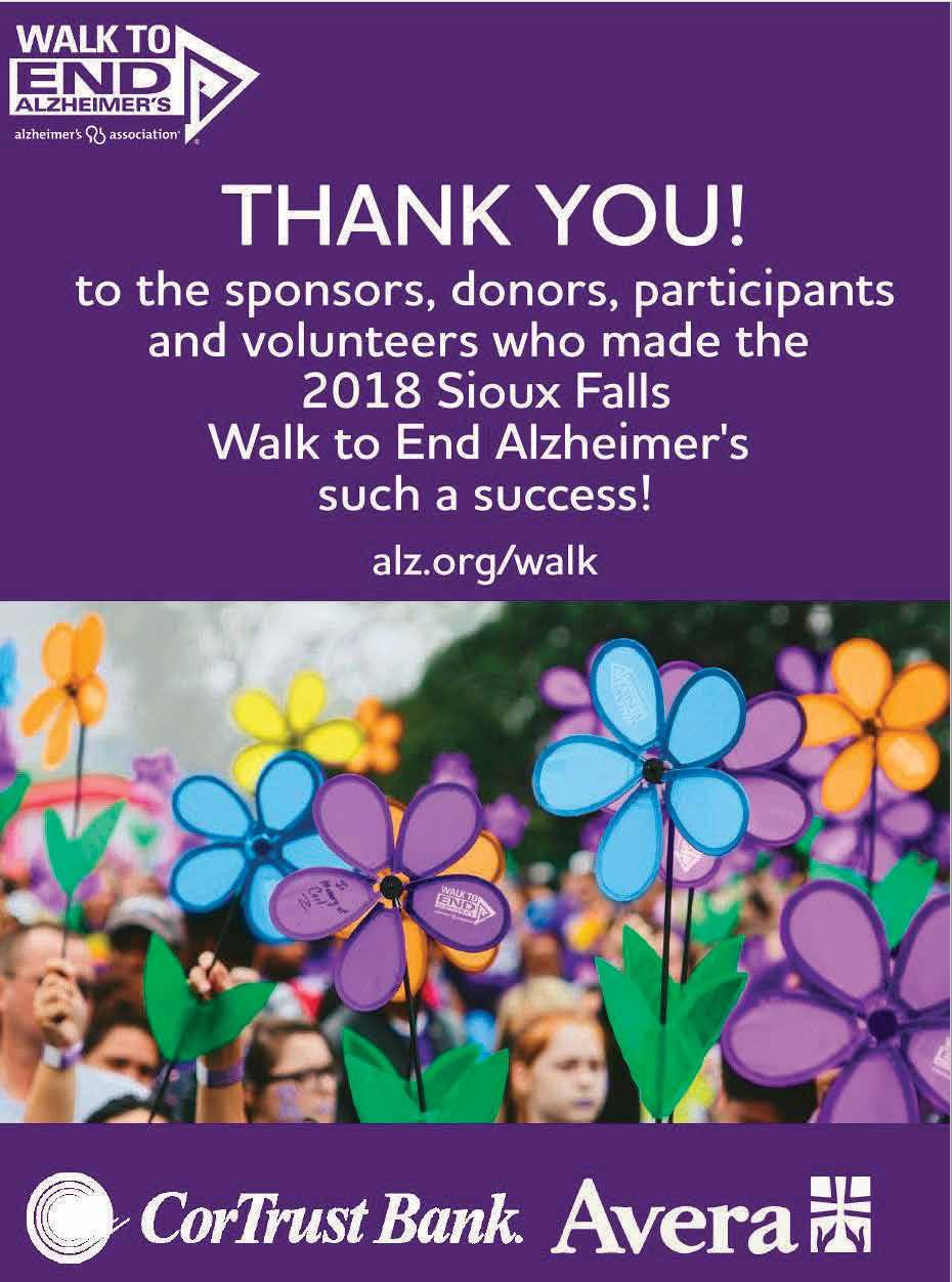 Thank you to the volunteers, sponsors, donors, & participants who made the 2022 Sioux Falls Walk to End Alzheimer’s such a success! We are still fundraising! Donate here: http://act.alz.org/siouxfalls THANK YOU!