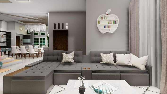 Mr. Slove storages and unique costumized furniture, he asked me to make a Apple-shaped furniture. Iput this open shelf at the family room area, but keep it simple with no additional wall decoration. He also request built-in aquarium for dining area.