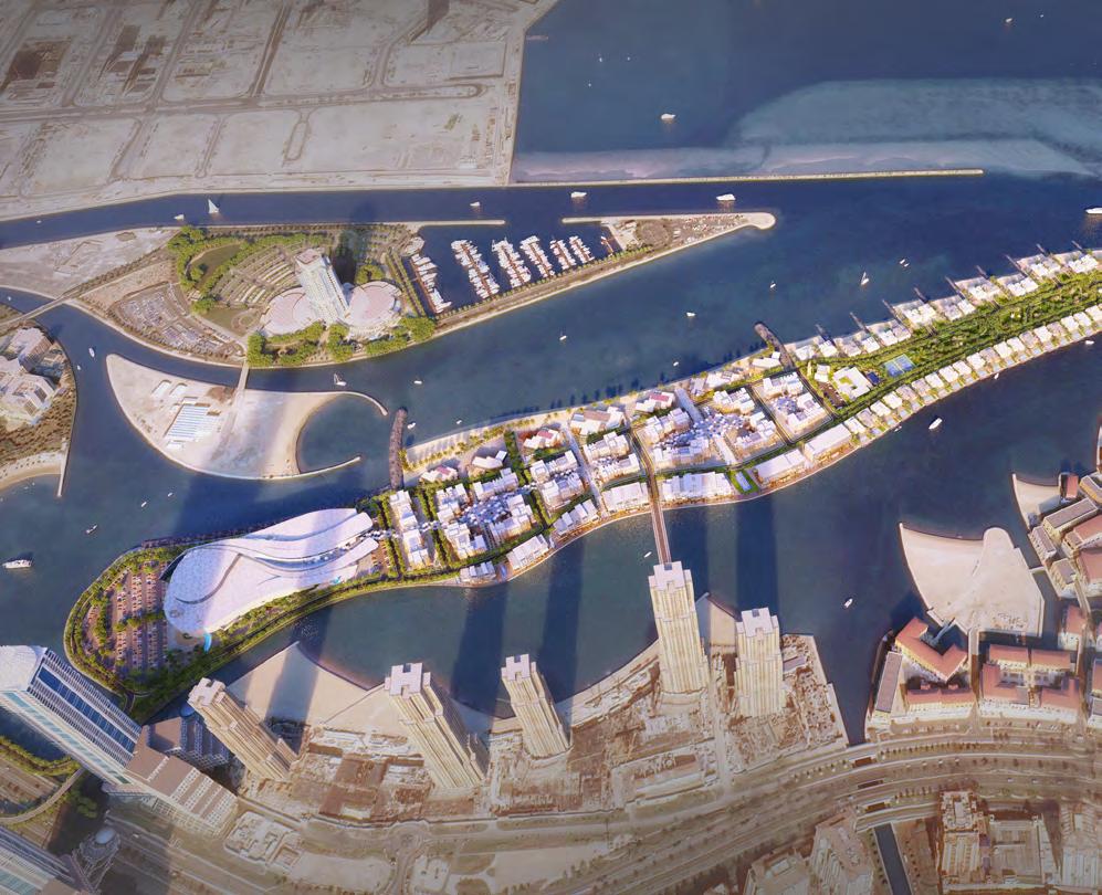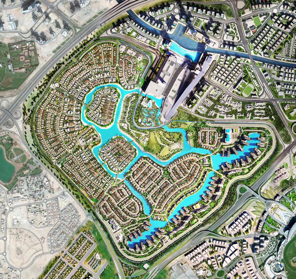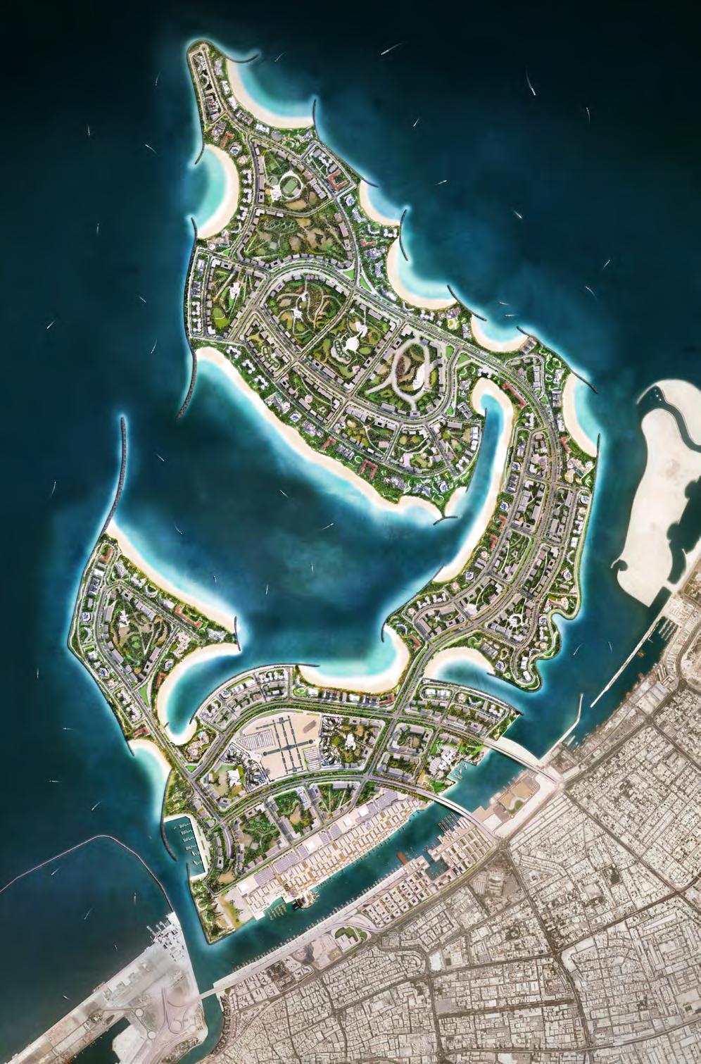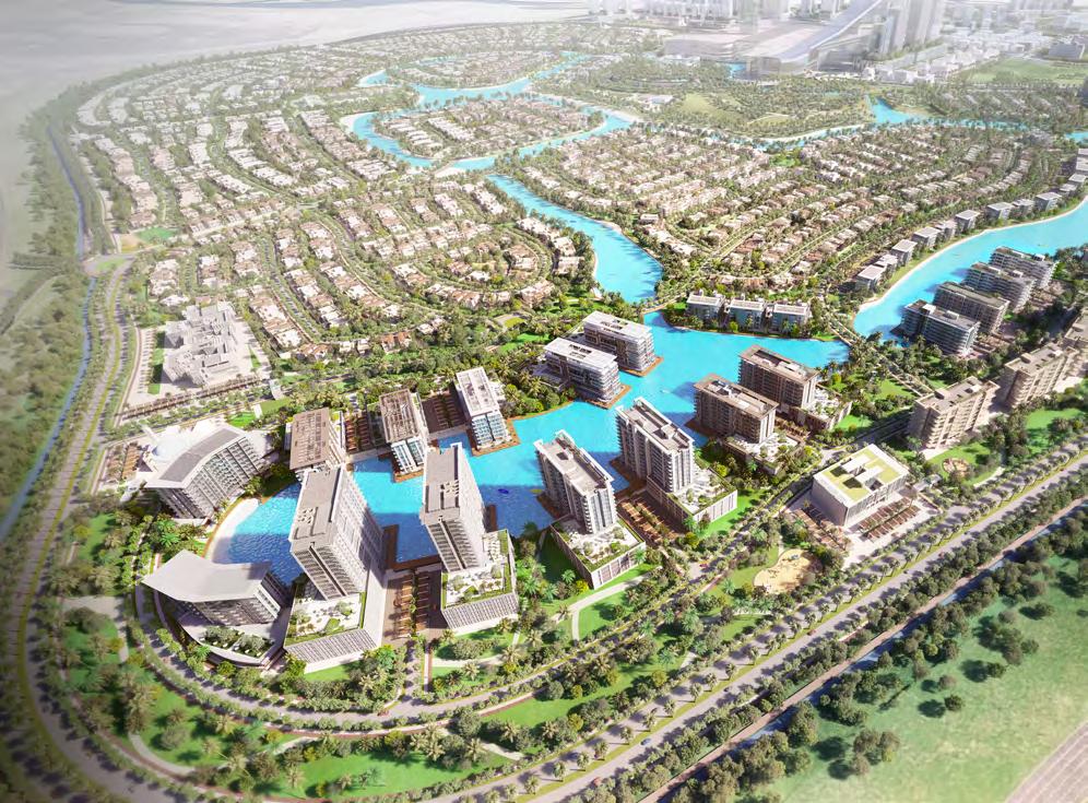 The vision of the development is to provide a ‘home away from home’ for the Emiratis and expatriates of the Emirate of Dubai and other Emirates. A home at a waterfront community with canals and waterways connected to the Arabian Gulf and with private berthing and mooring of boats or private beaches at the water facing units. The development is 1.8 million square meter with 600 single family residences and 13,000 apartments with 2 luxury hotels and 3 marinas.