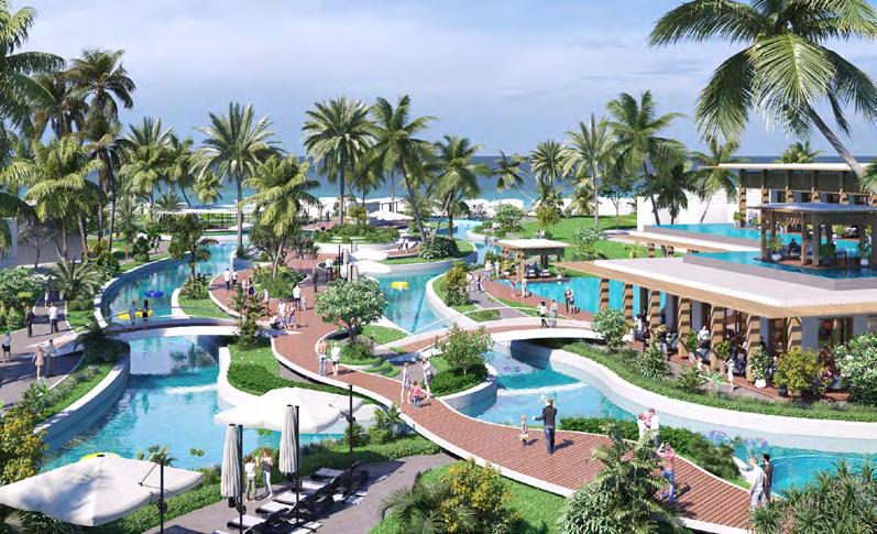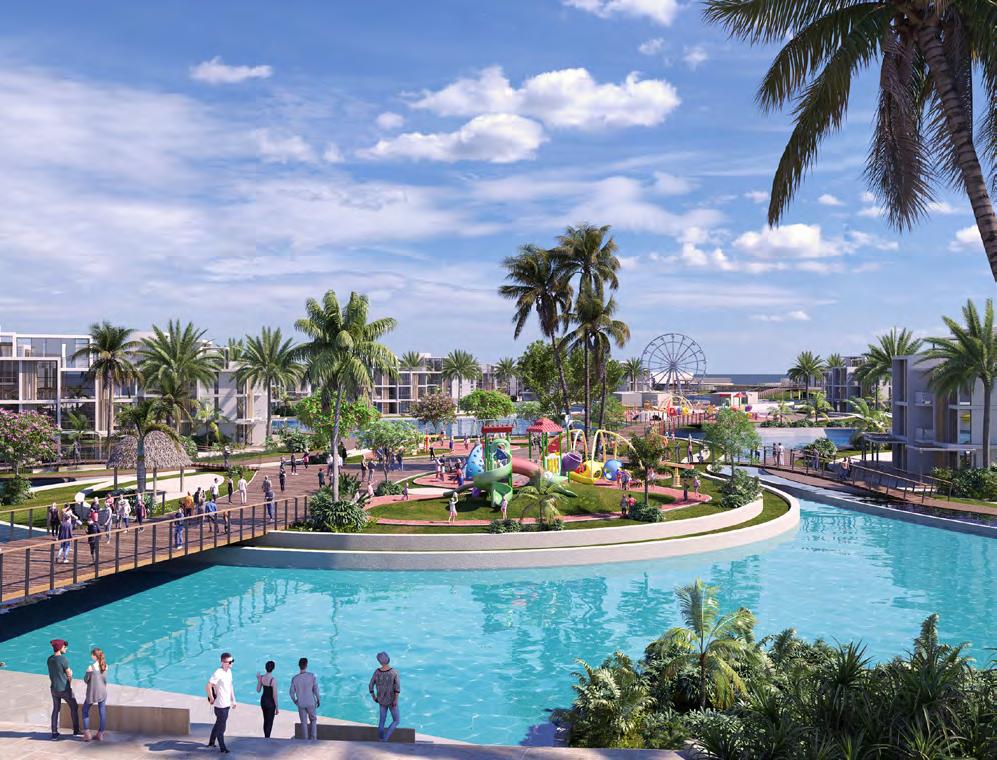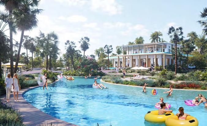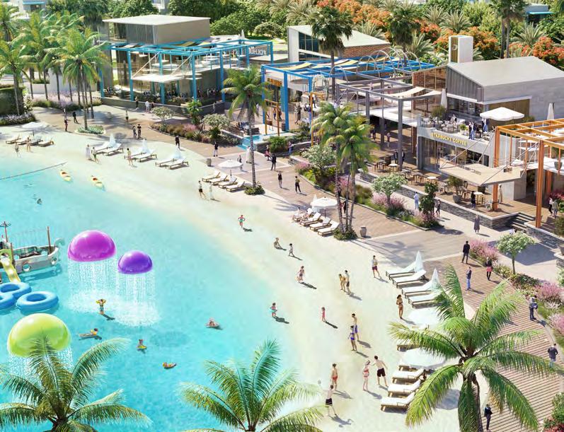 In addition to the pristine coast waters there are endless leisure activities including beach cabanas, inland water lagoon and beaches, a lazy river, a boardwalk experience, flow rider wave pool and entertainment island. Over 150,000 square meters of open water bodies and swimmable lakes throughout the development consisting of a mixture or rivers, pools, lakes and other water amenities. Artificial beaches on private lakes located inside the communities provide places to relax on a white sandy beach in the summer sun.