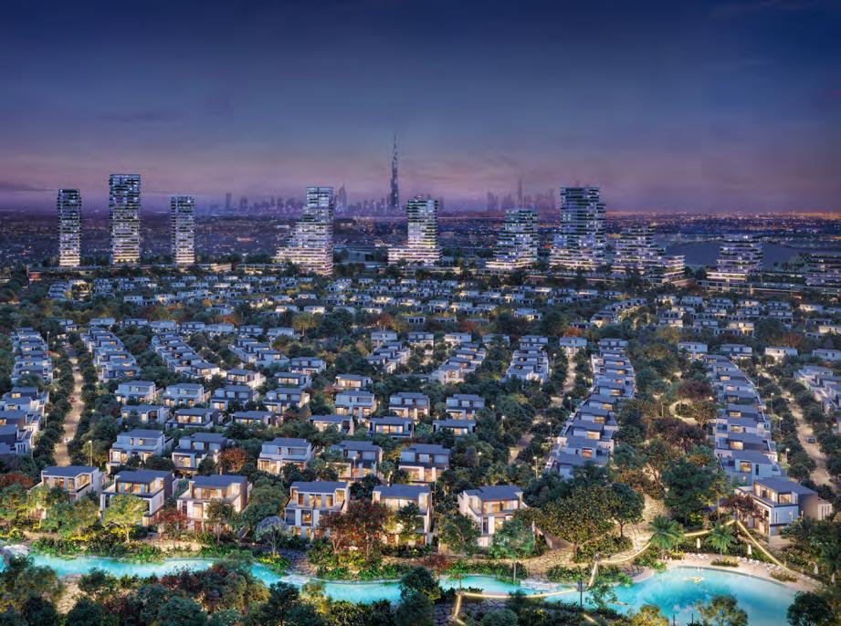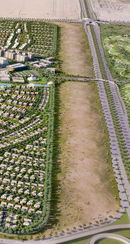 The development is wrapped with green pathway with jogging, cycling and pedestrian routes, and to be linked with the overall city of Dubai as part of the green initiative of Dubai Vision 2040.