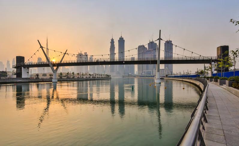 The resulting Dubai Water Canal Project development includes multiple bodies of water. The 1.8-mile canal connects the Business Bay to the Gulf Bay, and a connection to Safa Park brings the beach experience inland.